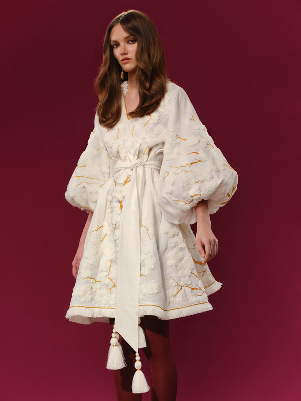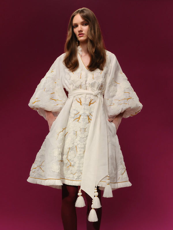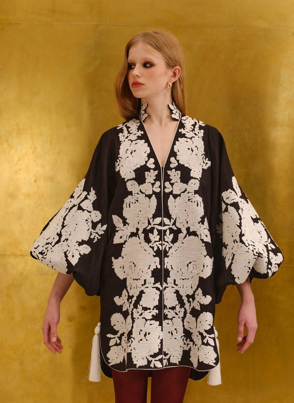 Повністю вишитий лляний кафтан міні