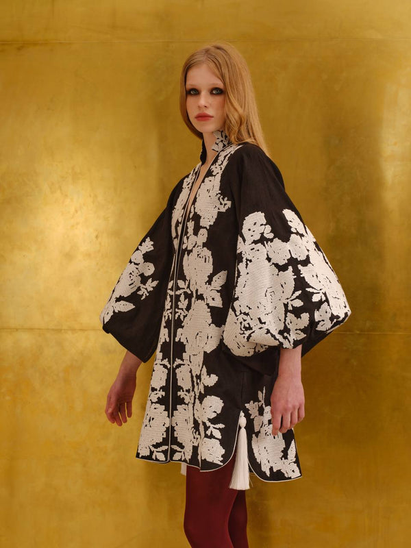 Повністю вишите пальто з вовни кашеміру міні