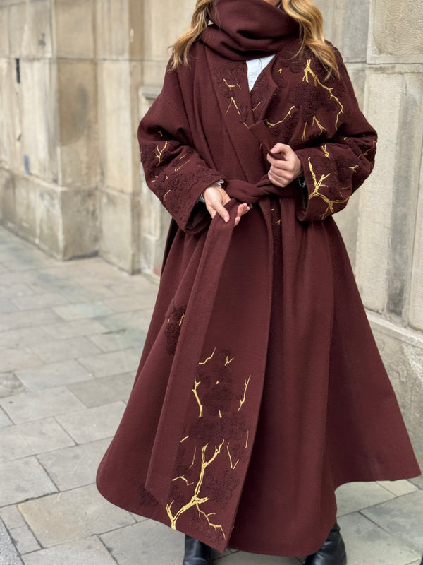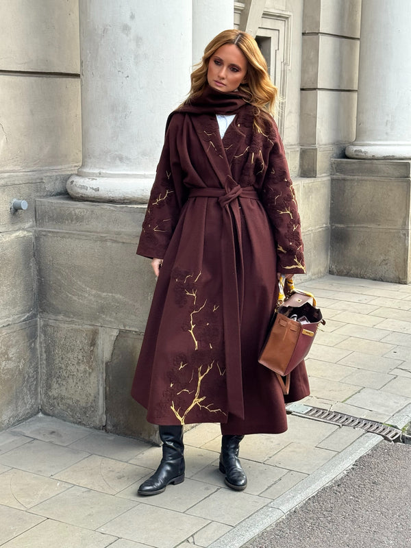 Повністю вишите пальто з шерсті максі