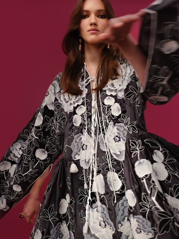 Повністю вишита сукня міді з шовк-батисту